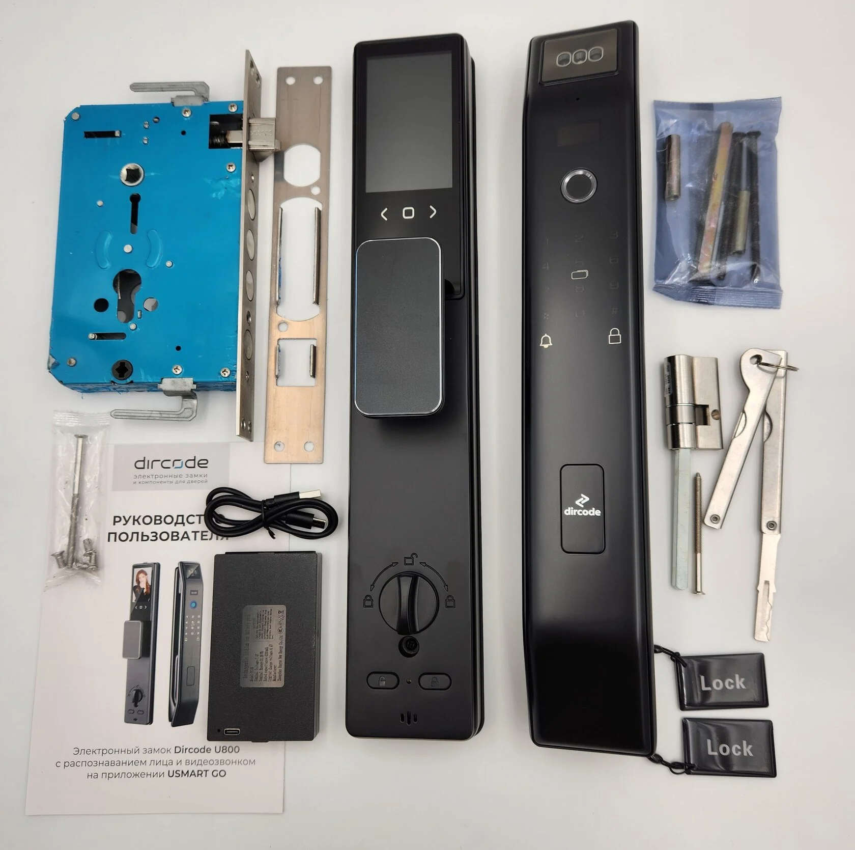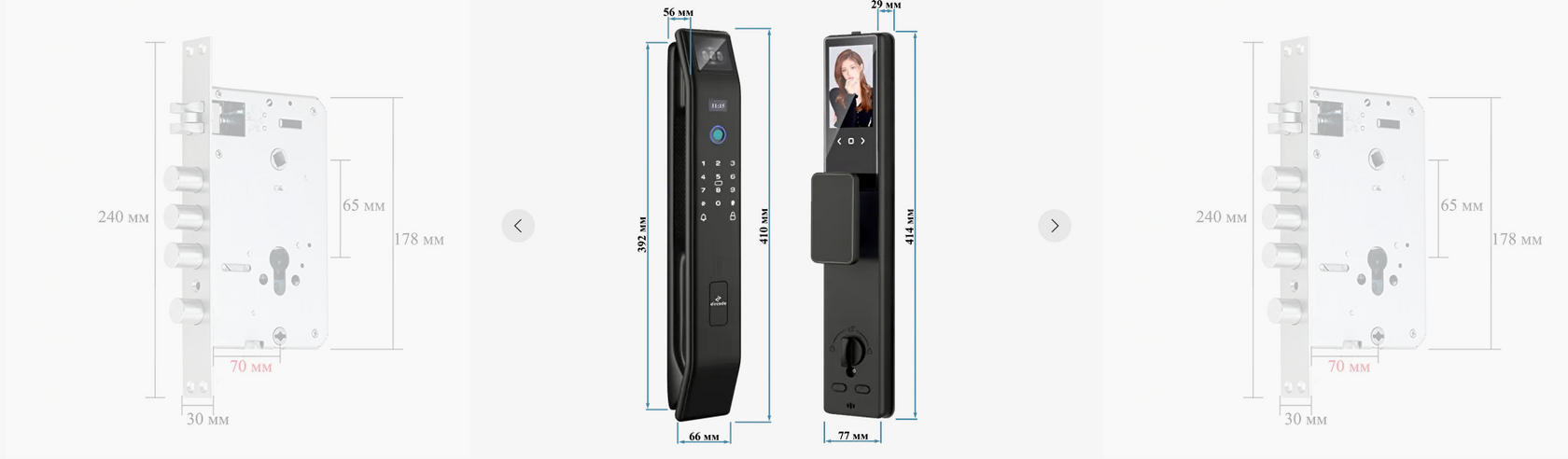 Распознавания лица, пин-код, отпечаток пальца, RFID-карта, приложение, механический ключ.